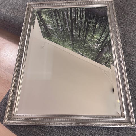 Spejl i antik look med sølv ramme.