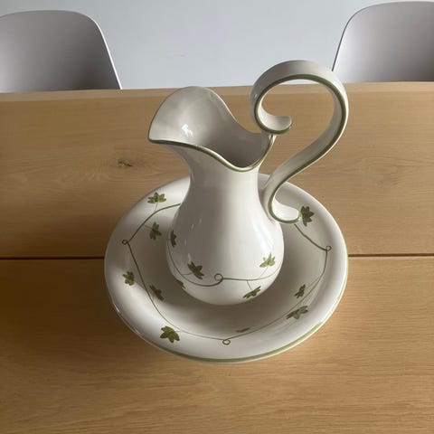 Keramik, Servante , Keramik, Servante kande med fad Smuk keramik kande med fad. Top stand