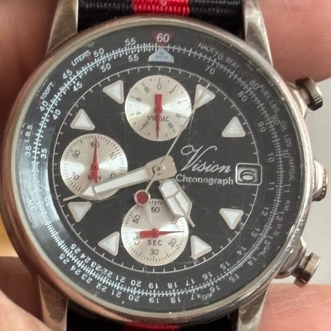 Klassisk Vision quartz armbåndsur med dato ved kl. 3.