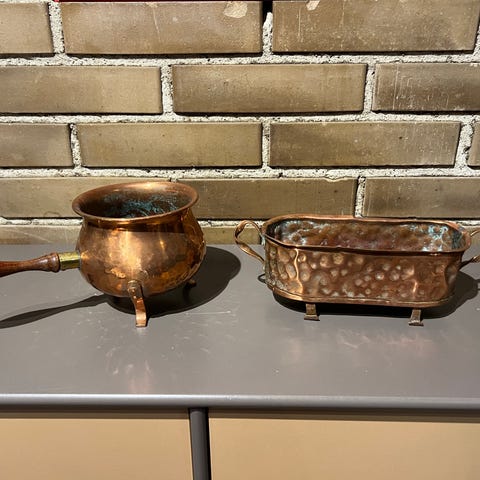 Kobber tekande og kobberpande køkkengrej sæt