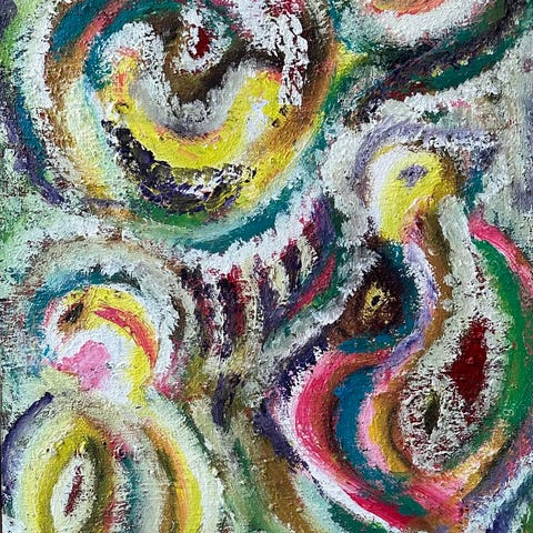 Abstrakt maleri grønne og gule nuancer