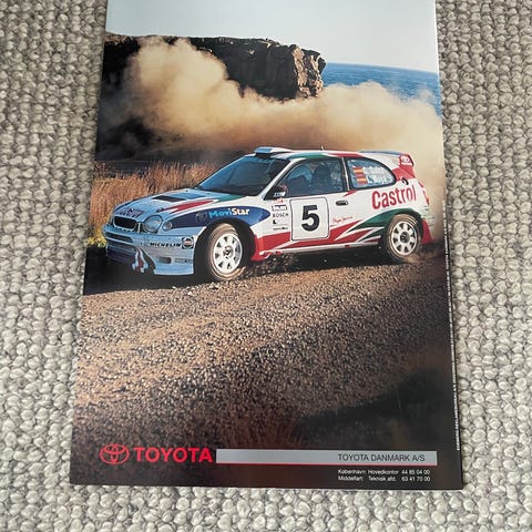 Toyota Corolla brochure. Trykt salgsmateriale med billeder og tekst om Toyota Corolla-modeller. Indeholder fotos af eksteriør og interiør samt tekniske og udstyrsmæssige oplysninger om bilen. Velegnet som reference for ejere, samlere eller interesserede i denne generation af Toyota Corolla.
