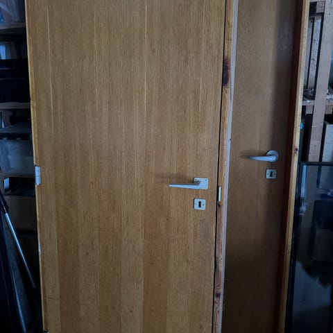 2 finlands døre med ramme + greb samt yderligere 5 rammer (uden døre) sælges samlet.