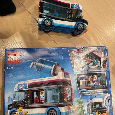 Fin udgået model; salgsvogn med kæmpe slushice på taget, ismaskiner, salgsvindue og 2 minifigurer. Den ene side af bilen kan åbnes for nemmere leg. Komplet sæt inkl. manual og original æske, men i nye poser. Nypris 180 kr.