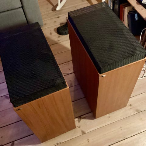 Alle diskanter virker, den originale peerless bas er blevet udskiftet på et tidspunkt med en monacor, men vi har sammenlignet den med et andet sæt OA 14 med peerless bas, og de lyder forbavsende ens!!?