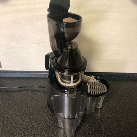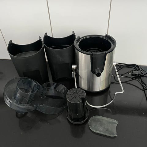 Saft-presser til frugt og grønt. Skiller saft og frugtkødet. 480ml volumen. Brugt Max 5 gange. Vejer 2,2kg , ledning 1,6m. Let at rengøre.