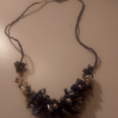This necklace is crafted from natural materials, including crystals, pearls, and other gemstones. It is elegant, stylish, and truly unique.