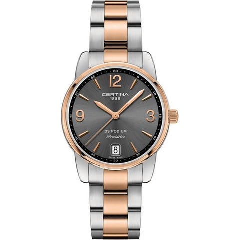 Smukt og tidløst Certina DS Podium dameur i poleret rustfrit stål med en dyb sort skive. Et ur der passer lige så godt til hverdagen med jeans som til en aften ude. Certina er et anerkendt schweizisk urmærke grundlagt i 1888, og DS Podium-serien er kendt for sin elegante, sporty stil.