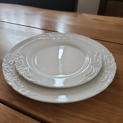Middagstallerkener. Porcelæn i hvid. 12 styks. Foglia