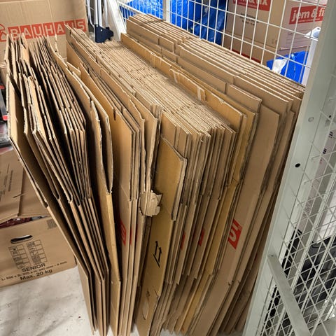 Flyttekasser fra flyttefirma (OBS der er 7 i kø)