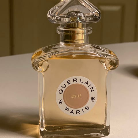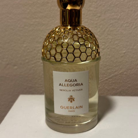 Parfume i dekorativ blå glasflakon med guldfarvet kugleformet låg. Flasken har rund form med mønstret overflade. Egnet til opbevaring og brug af parfume eller duftolie. Velegnet til placering på badeværelseshylde eller sminkebord som både brugsting og pyntegenstand. 30 ml flaske