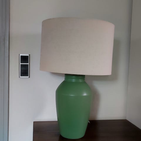 Hvide keramiklamper, natbord, sengebord, sofagruppe