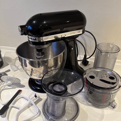 KitchenAid køkkenmaskine med skål og tilbehør sort rustfrit stål