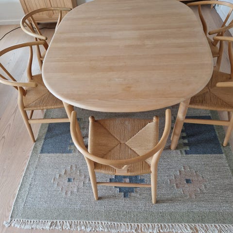 Med tilhørende 4 stks Wegner Y-stole, sæbebehandlet Eg