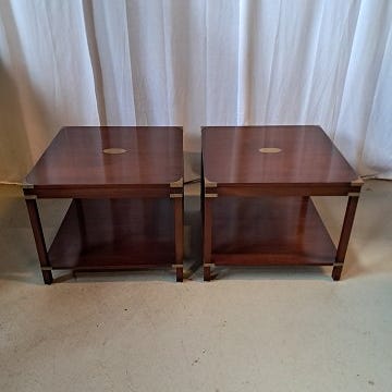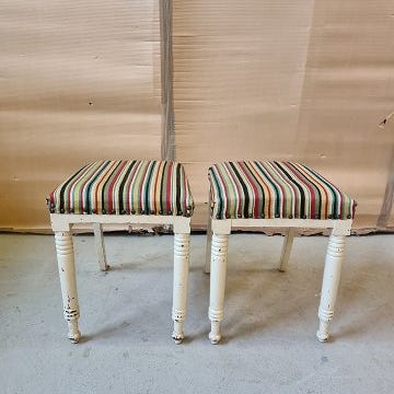 Dansk snedker et par taburetter i lakeret mahogni betrukket med stof.