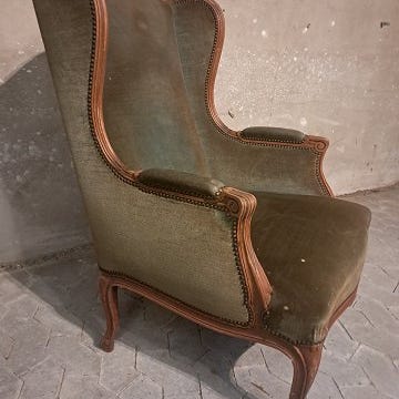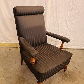 Lænestol i mahogni med velour betræk, fra 1900erne.