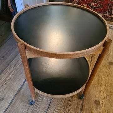 Pyntebord i massivt træ med messingplade, fra 1980erne.