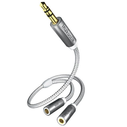 Inakustik MiniJack Y-split lydcable | Kompakt jack-adapter med 24K guldkontakter og højren kobber, ideel til at dele lyd mellem to hovedtelefoner uden at belaste enhedens stik.