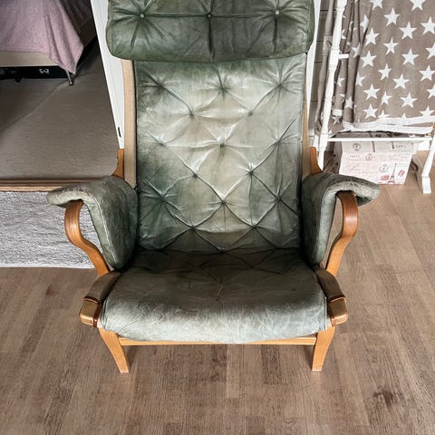 Fremstår med patineret læder og brugsspor der nok kan udbedres med læderfedt.