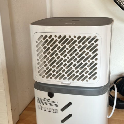 Apt luftfugter i hvid. Enheden er elektrisk og står frit på bord eller gulv. Den har betjeningsknapper på fronten og en åbning i toppen til udsivning af fugt. Velegnet til indendørs brug i rum, hvor der ønskes regulering af luftfugtigheden. Kan afhentes i Aarhus N eller sendes på køberens regning.