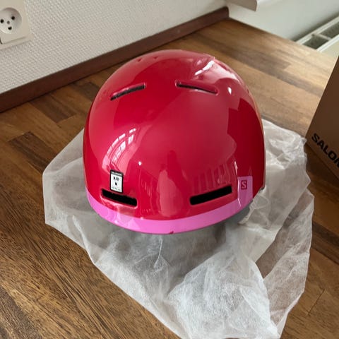 Salomon skihjelm i størrelse XS i sort farve. Hjelmen har ventilationsåbninger og justerbart spænde under hagen. Indersiden er polstret for øget komfort.