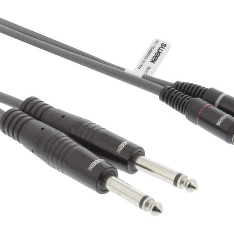 PRIS-MATCH! 6.3 mm. Jack - Phono RCA stereo audio kabelsæt | Stereo lydkabel fra 2x 6.3 mm. mono Jack stik til 2x Phono RCA.