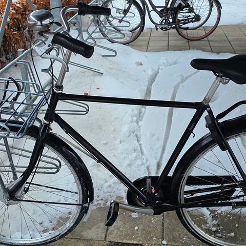 Cyklen har skærme, støtteben og magnetisk baglygte. Den er enkel og driftssikker – perfekt som pendlercykel i byen.