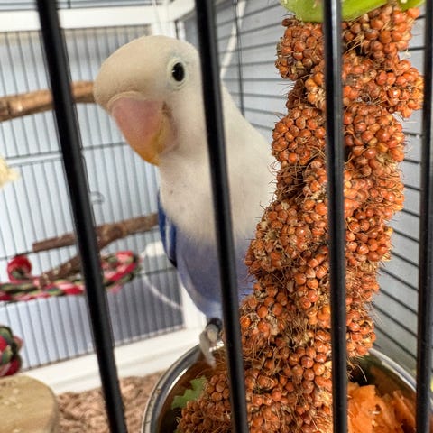 2 papegøjer og alt medfølger.