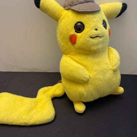 Pokémon Pikachu plysdyr i gul farve. Figuren forestiller karakteren Pikachu fra Pokémon-universet og er fremstillet i blødt plys med broderede øjne og detaljer. Velegnet som legetøj eller som samlerfigur til fans af Pokémon.