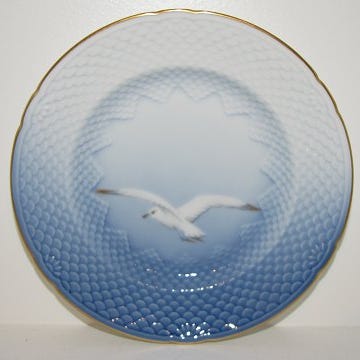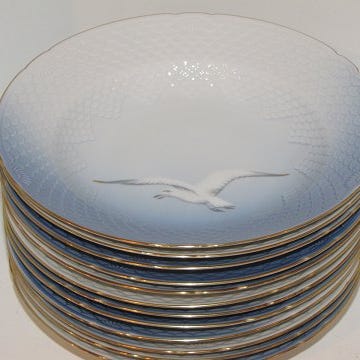 Bing & Grøndahl Måge med guldkant, stor desserttallerken.