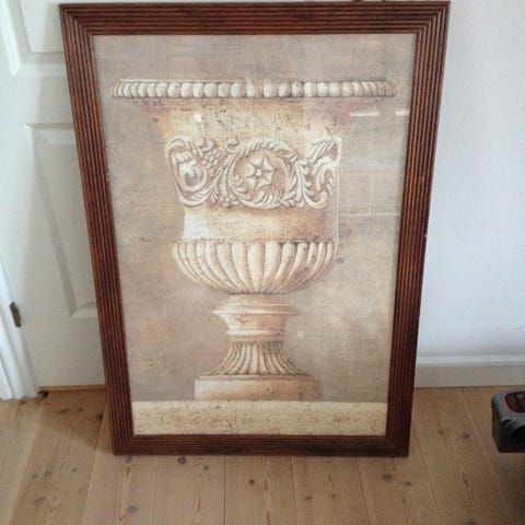 G & C vægkunst med to billeder i sæt. Motiverne forestiller stiliserede botaniske planter i krukker i dæmpede beige og grønne nuancer. Begge billeder er indrammet i lyse trærammer med glas. Velegnet som vægdekoration i stue, entré eller soveværelse, hvor der ønskes et roligt, naturinspireret udtryk.