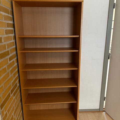 Reol bogreol med flere faste og justerbare hylder. Egnet til opbevaring af bøger, mapper og andre genstande i stue, kontor eller værelse. Klassisk, lodret reol med åben front, der giver god oversigt over indholdet. Jeg har 3 reoler, de er meget robuste, 125 kr pr styk og 300 for alle 3