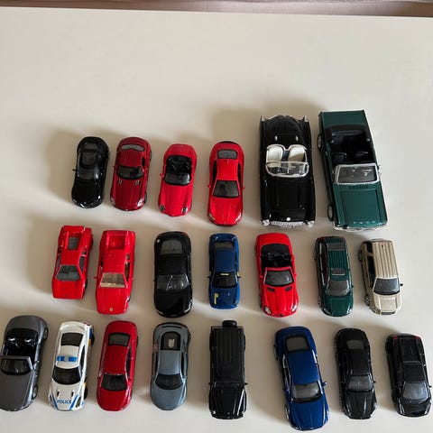16 stk forskellige racerbiler, brandbil, truck osv i metal. De klassiske små metal legetøjsbiler. Med brugsspor. Samlet pris.