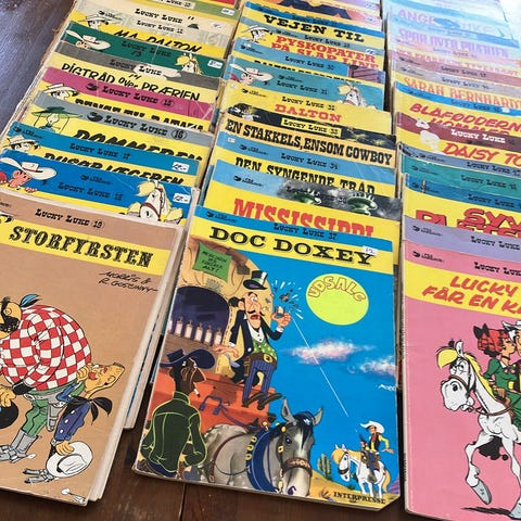 Lucky Luke tegneserieblade samling udgivet af Interpresse. Samlingen omfatter blandt andet titlerne “Blåfodderne kommer”, “Daisy Town”, “Nitroglycerin” og “Maskotten”. Tegneserierne er i albumformat med farvetryk og klassiske westernhistorier om Lucky Luke-universet. Velegnet til samlere af Lucky Luke og danske Interpresse-udgivelser.