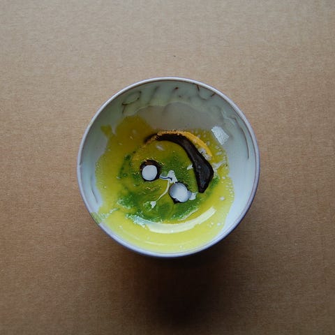 Denne dybe tallerken (ca. 17 cm) er et unika – håndglaseret.