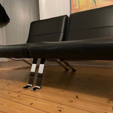 RIGTIG LÆKKER OG GOD LÆNESTOL / LOUNGESTOL SÆLGES . MEGA GOD SIDDEKOMFORT OG STØTTE TIL BL.A. LÆNDEN . KRAFTIG SORT LÆDER OG CHROM METAL BEN .