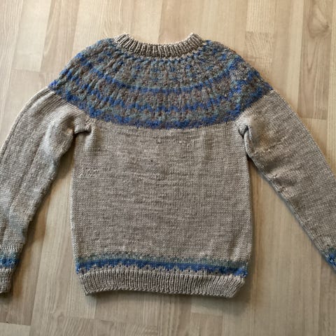 Ny, håndstrikket islandsk trøje, i 100% uld. Passer str. 8-9 år.