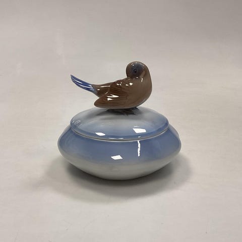 Bing og Grøndahl Art Nouveau. Design Dahl-Jensen. Bonbonniere med fugl nr. 1623. Måler 10 x 12 cm. 1. Sortering. 100% perfekt stand, uden brugsspor.