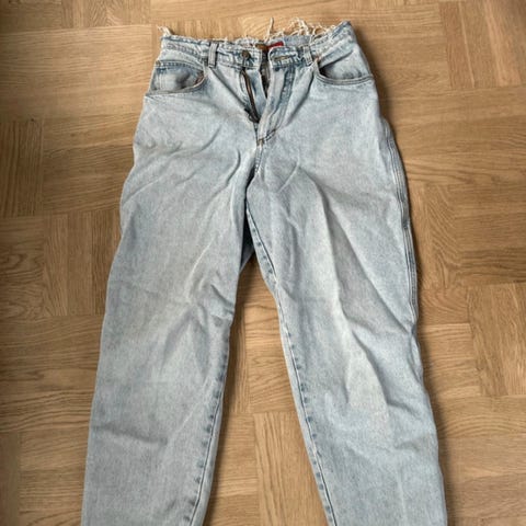 BLS jeans til herre i størrelse M med taljemål W30. Bukserne er fremstillet i bomuld og er i en blå denimfarve. Klassisk femlommersdesign med bæltestropper og knap- og lynlåslukning. Velegnet til hverdagsbrug og kan kombineres med både T-shirts, skjorter og trøjer.