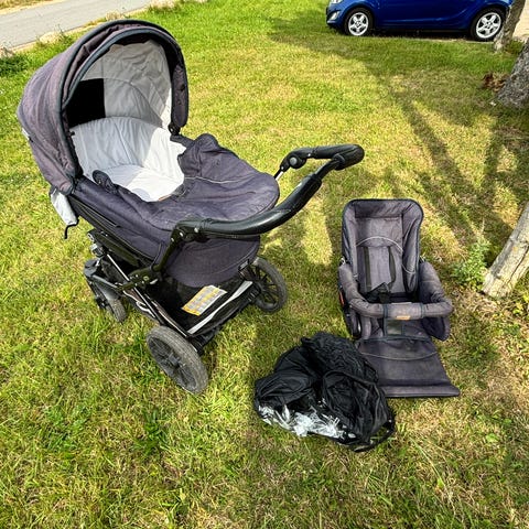 Super fed kombi vogn fra Emmaljunga. Købt i 2021 og fungere som den skal 😊 Der er lidt slid og mærker efter brug men står ellers rigtig flot.