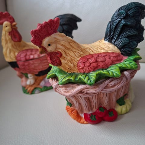 Gylden/ gul glas høne.