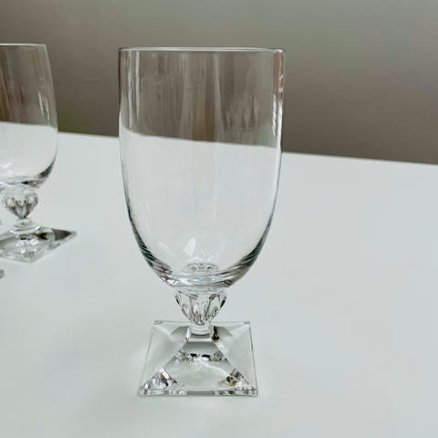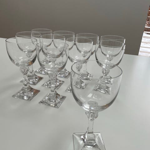 9 mundblæste, håndskårne hvidvinsglas i krystal fra Peill & Putzler. Krystalglas