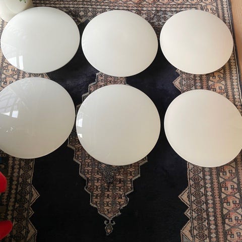 Rigtig flot lampeskærm til Arne Jacobsens AJ Eklipta lofts-/væglampe. 35 cm i diameter. Helt ny, men har et minimalt afslag, som jeg had forsøgt at tage billede af. Ny pris ca 2.195 kr.