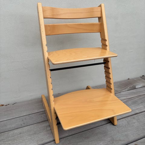 Stokke Tripp Trapp højstol. Klassisk justerbar højstol med fodplade og siddeplade, der kan tilpasses barnets højde. Egnet til brug ved spisebord eller som siddeplads i hjemmet. Designet til børn og kan følge barnet i flere aldre gennem justering af sæde og fodstøtte. Er inkl. Bundle og Bakke.