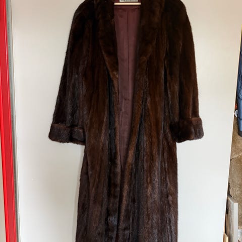 Smart hellang pelskåbe i brun mink. Passer en str 42.