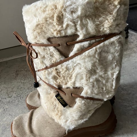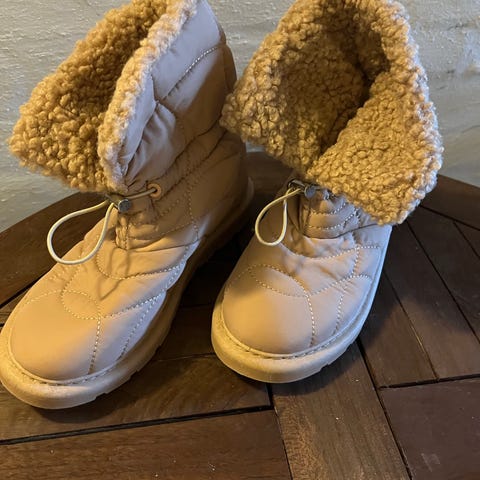 Jenny By Ara vinterstøvler i størrelse 38. Støvlerne er sorte med lys, brunlig kunstpelskant og indvendig foring. De har en kraftig, mønstret gummisål, der giver godt fodfæste. Lukning med lynlås i siden. Velegnet som varme vinterstøvler til hverdagsbrug.