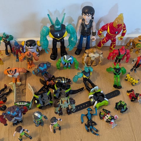 Ben 10 actionfigurer sæt med motorcykel. Sættet består af flere forskellige Ben 10 figurer i plast i forskellige farver samt en rød motorcykel. Figurerne forestiller forskellige karakterer og monstre fra Ben 10 universet og er egnet til leg og samling.