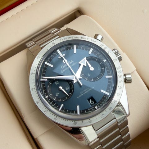 Sjælden og karakterfuld bicolor-udgave af den klassiske Speedmaster, udført i kombinationen 14 kt gult guld og rustfrit stål. Modellen måler 42 mm og bevarer det ikoniske Speedmaster-design med Hesalite-glas og manuel optræk.