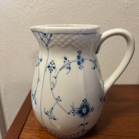 Kande i musselmalet fra Bing & Grøndahl.H 16 cm, B 24 cm, D 19 cm.Er limet ved tud, gå til varen, for flere billeder.