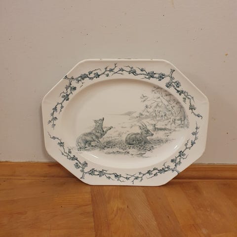 Fad fra Fables.B 32 cm, D 33 cm.Bærer præg af alder, gå til varen, for flere billeder.